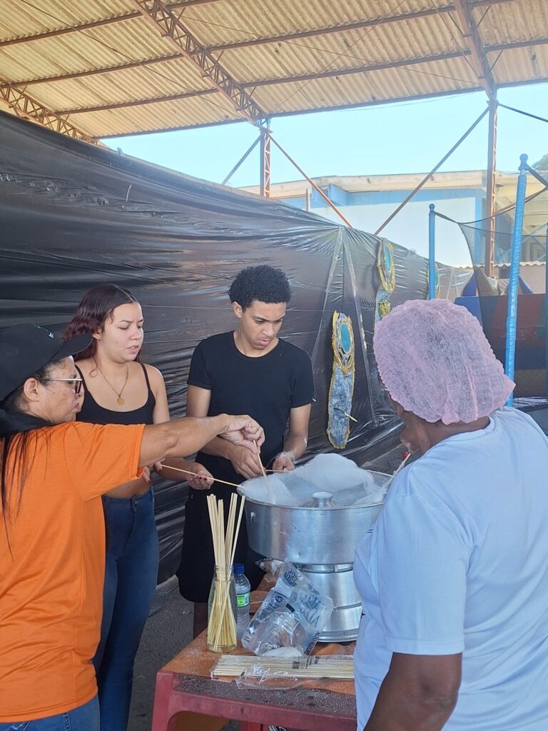 Além da distribuição de alimentos, o evento contou com alimentação gratuita, incluindo lanches e refrigerantes, garantindo energia e disposição para todos participarem da programação.